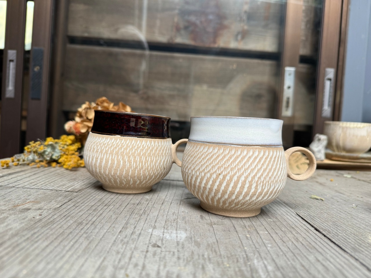 コロンとした形に白カンナがかわいいコーヒーカップ