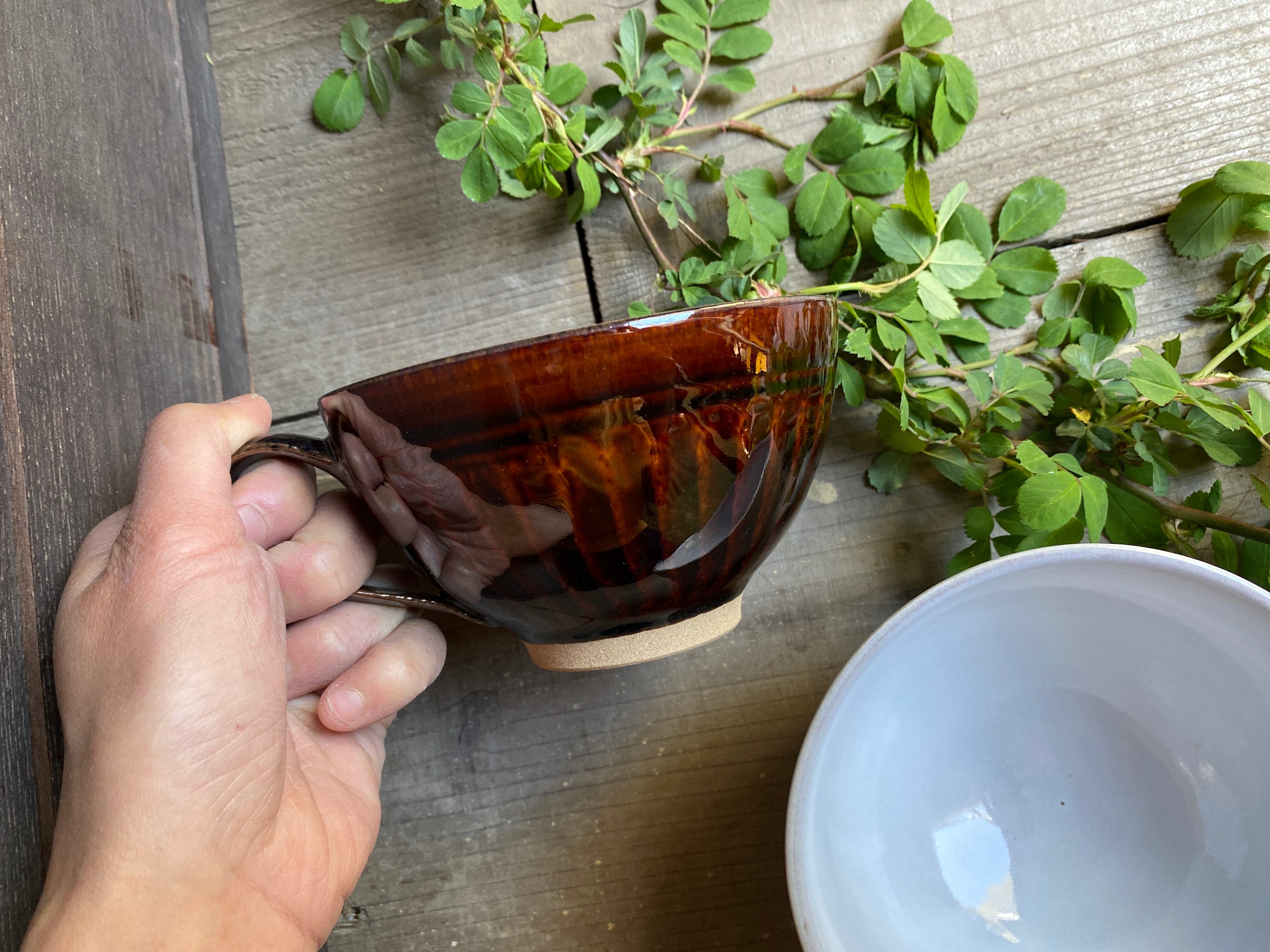 浅スープカップ 刷毛目